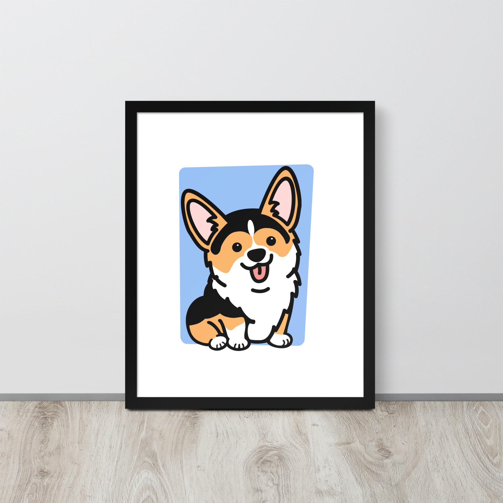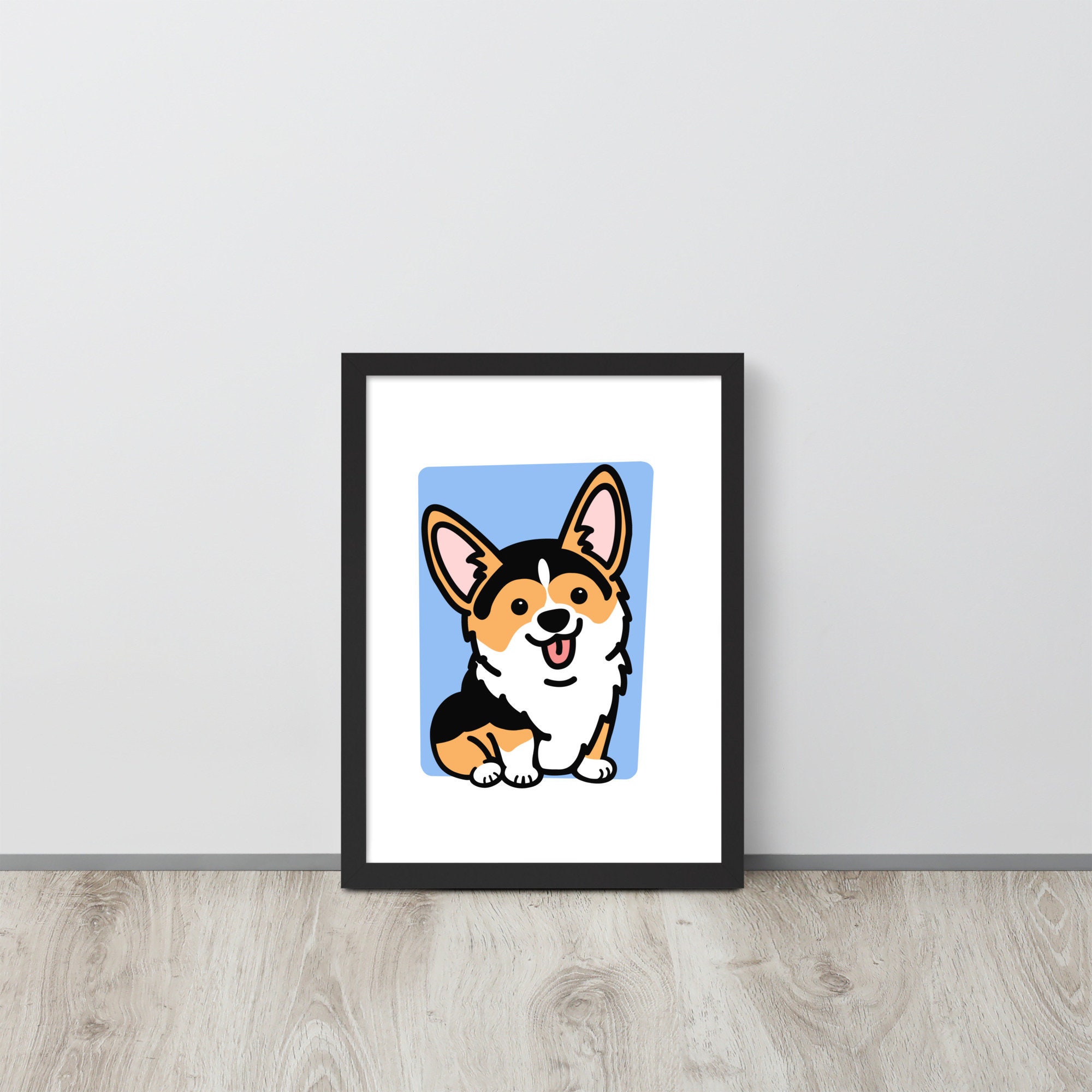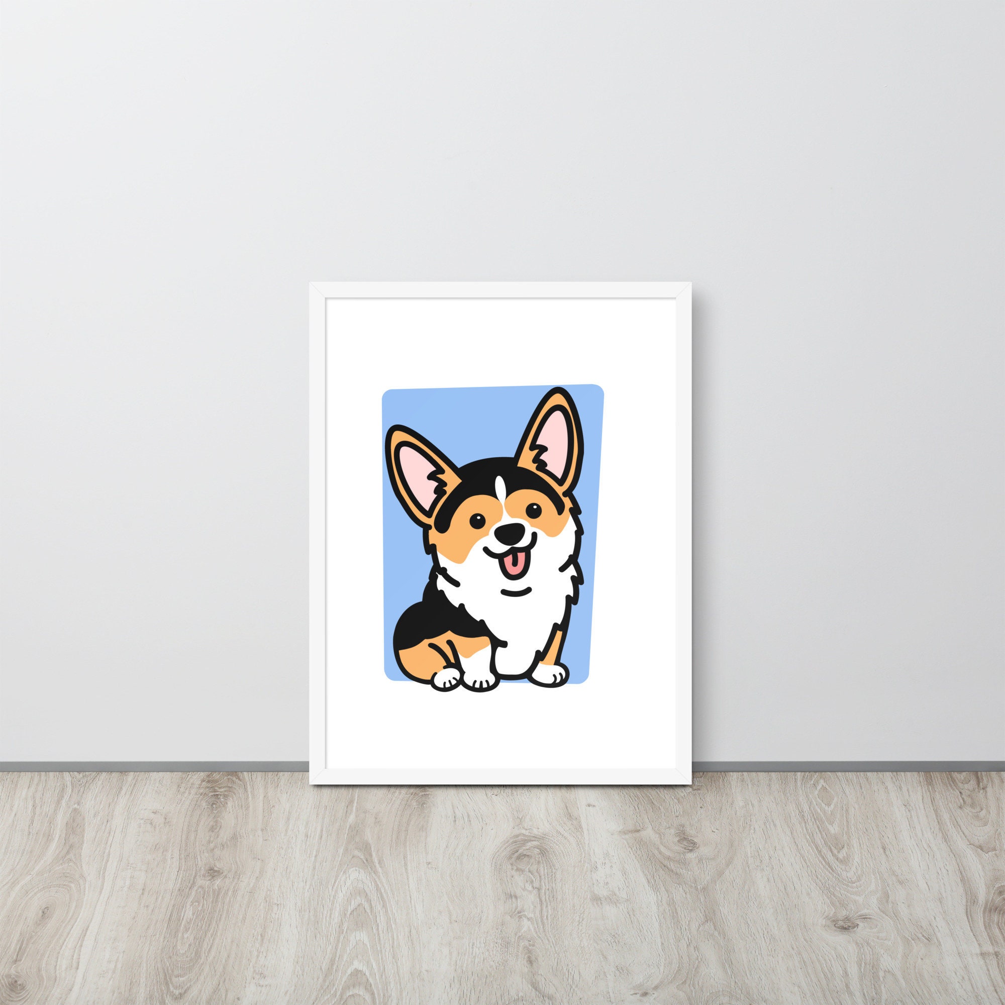Framed Tricolor Corgi Poster, Housewarming Gift for Corgi Lover, Pembroke Welsh Corgi Gift for Friend, Fawn Corgi Stuff, Office Decor