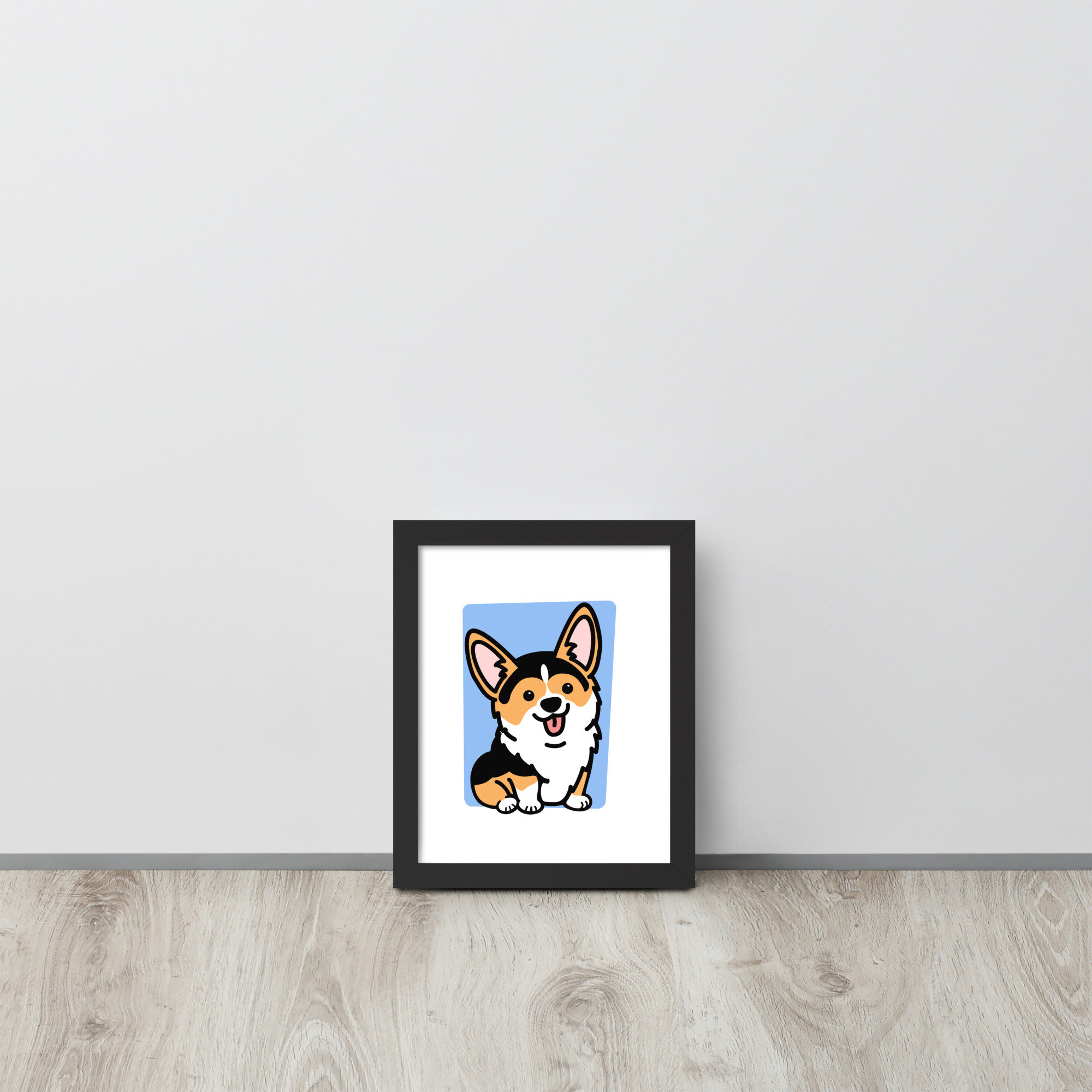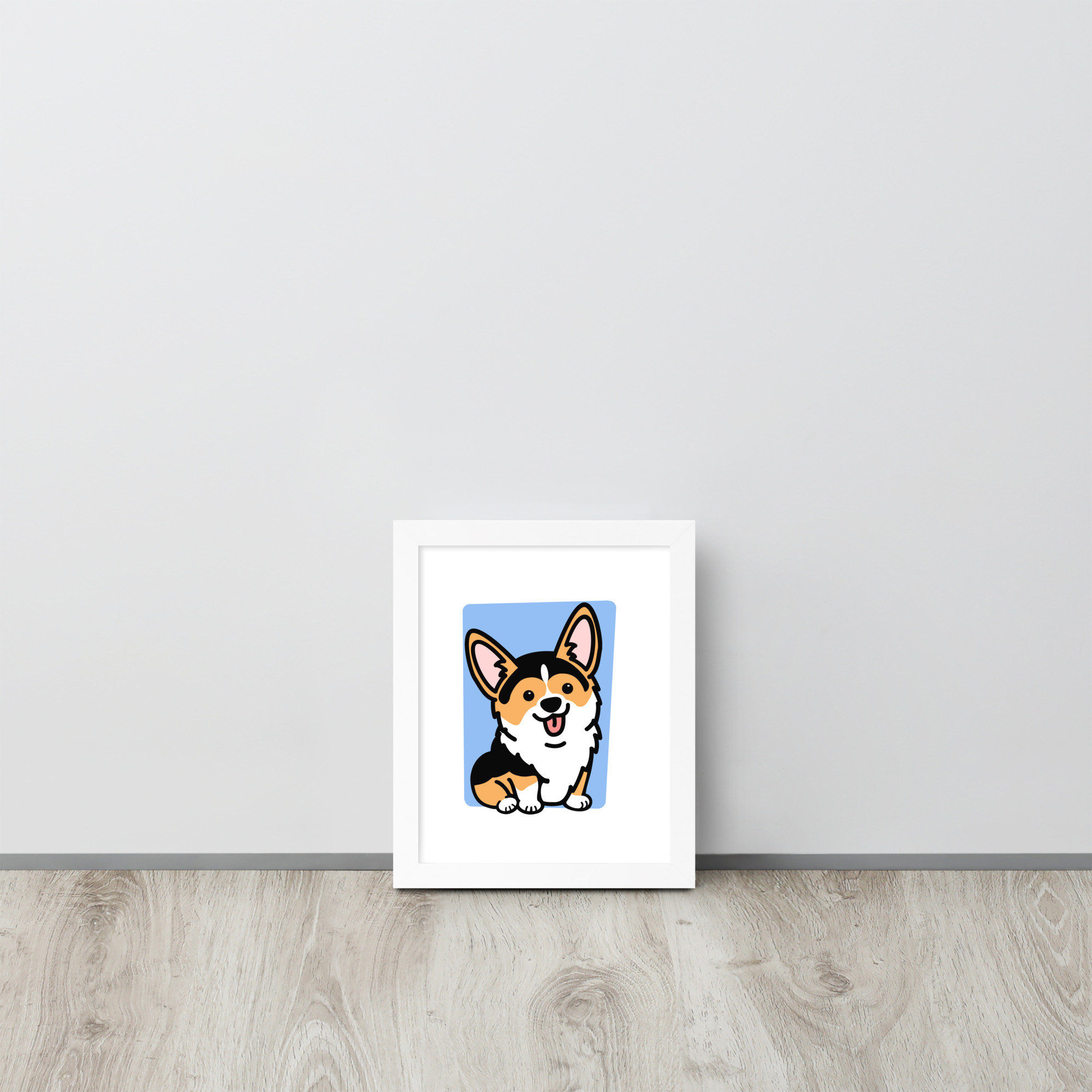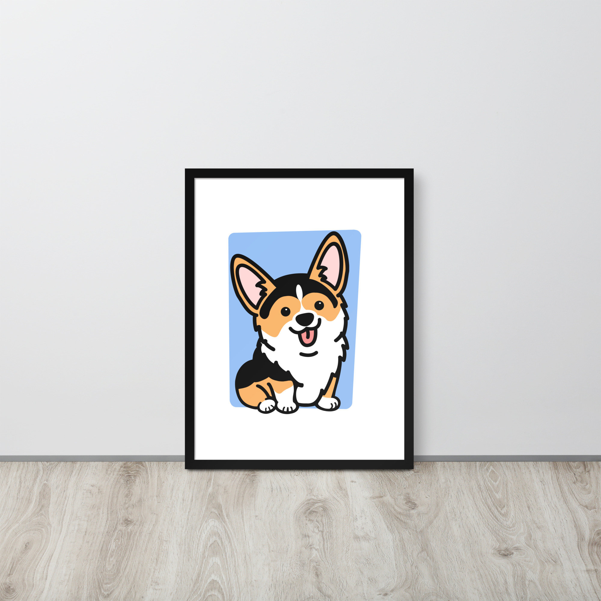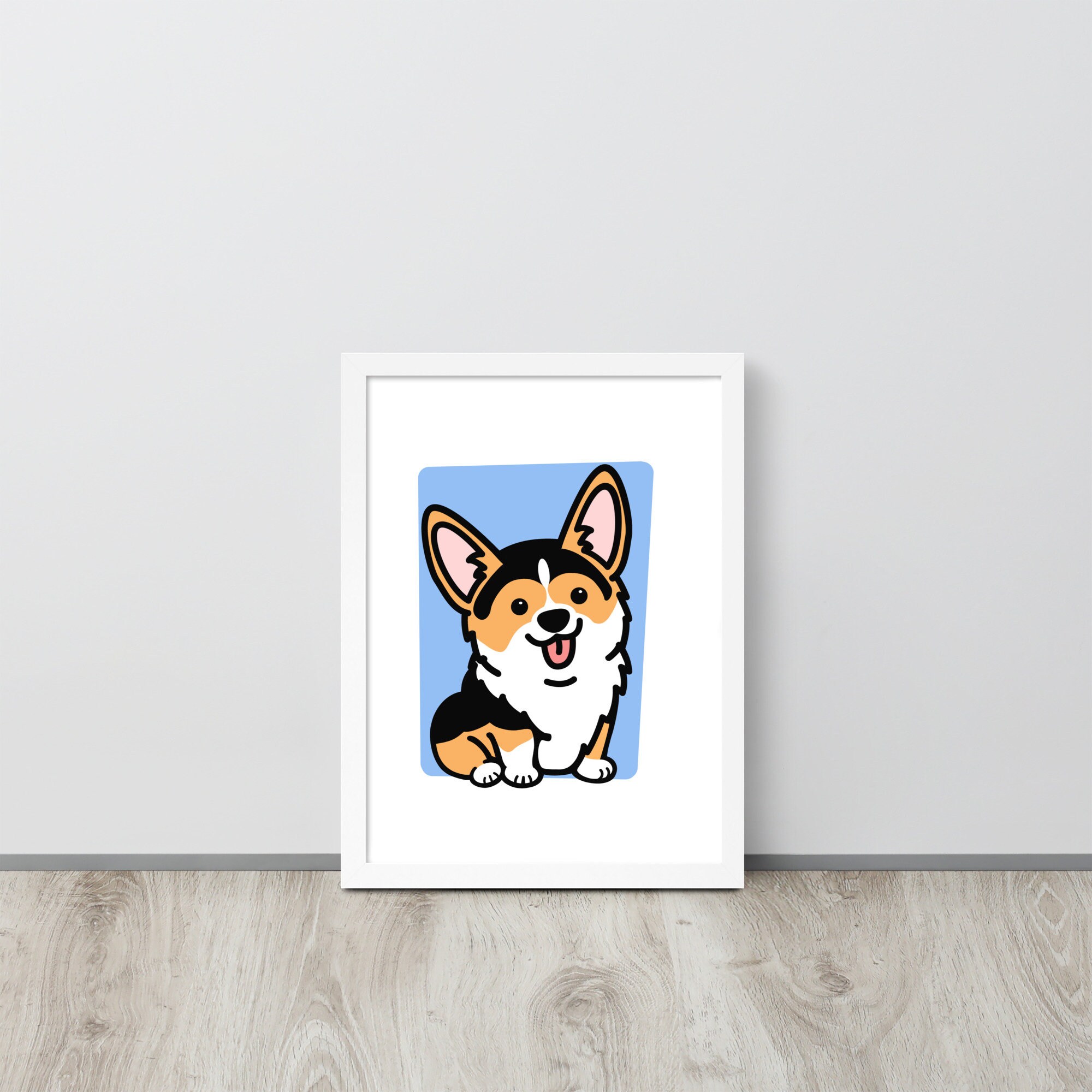 Framed Tricolor Corgi Poster, Housewarming Gift for Corgi Lover, Pembroke Welsh Corgi Gift for Friend, Fawn Corgi Stuff, Office Decor