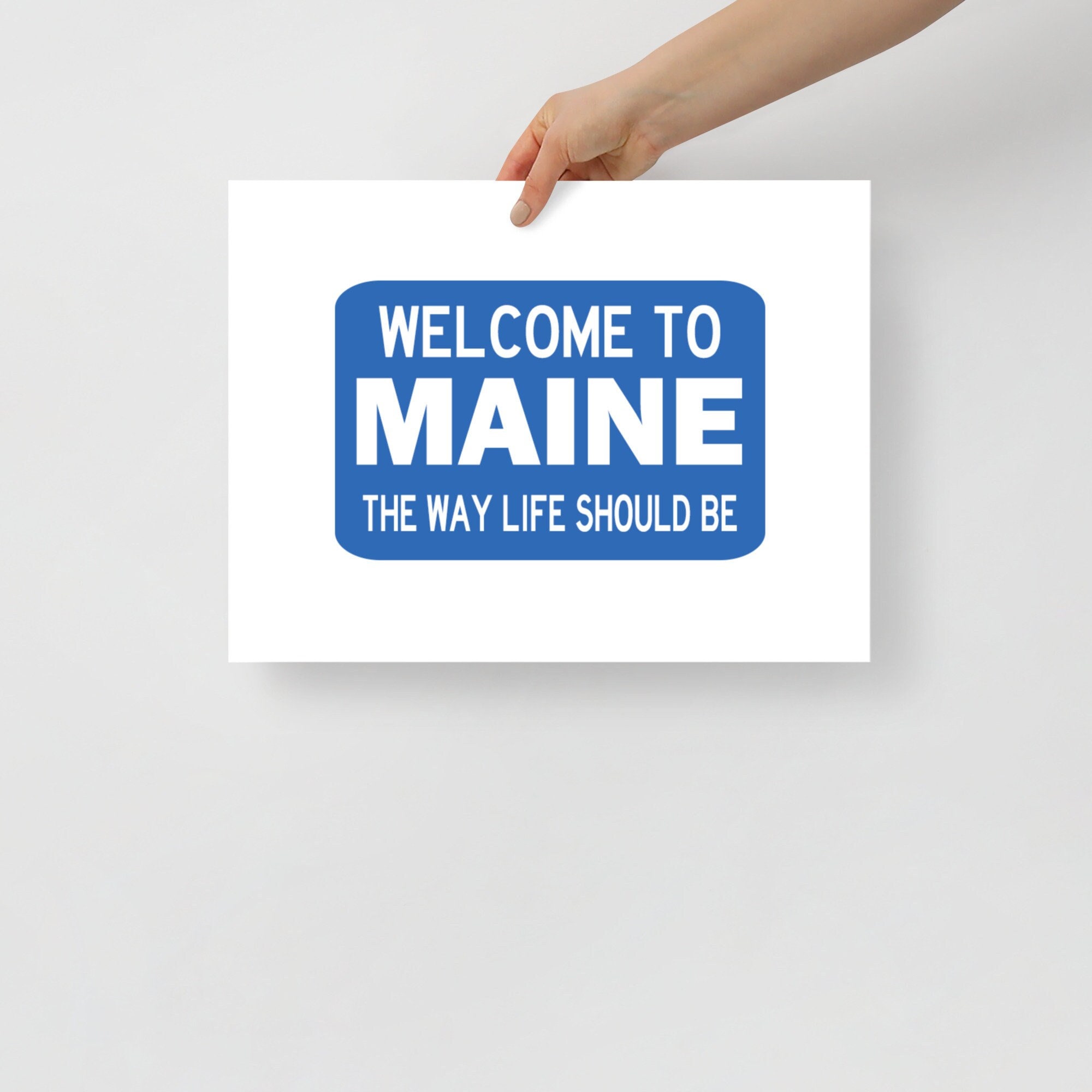 Are you or someone you care about from Maine? Do you have fond memories of spending time there? This item, featuring my version the highway sign found at the border of Maine, is designed for you! Maine: The Way Life Should Be
