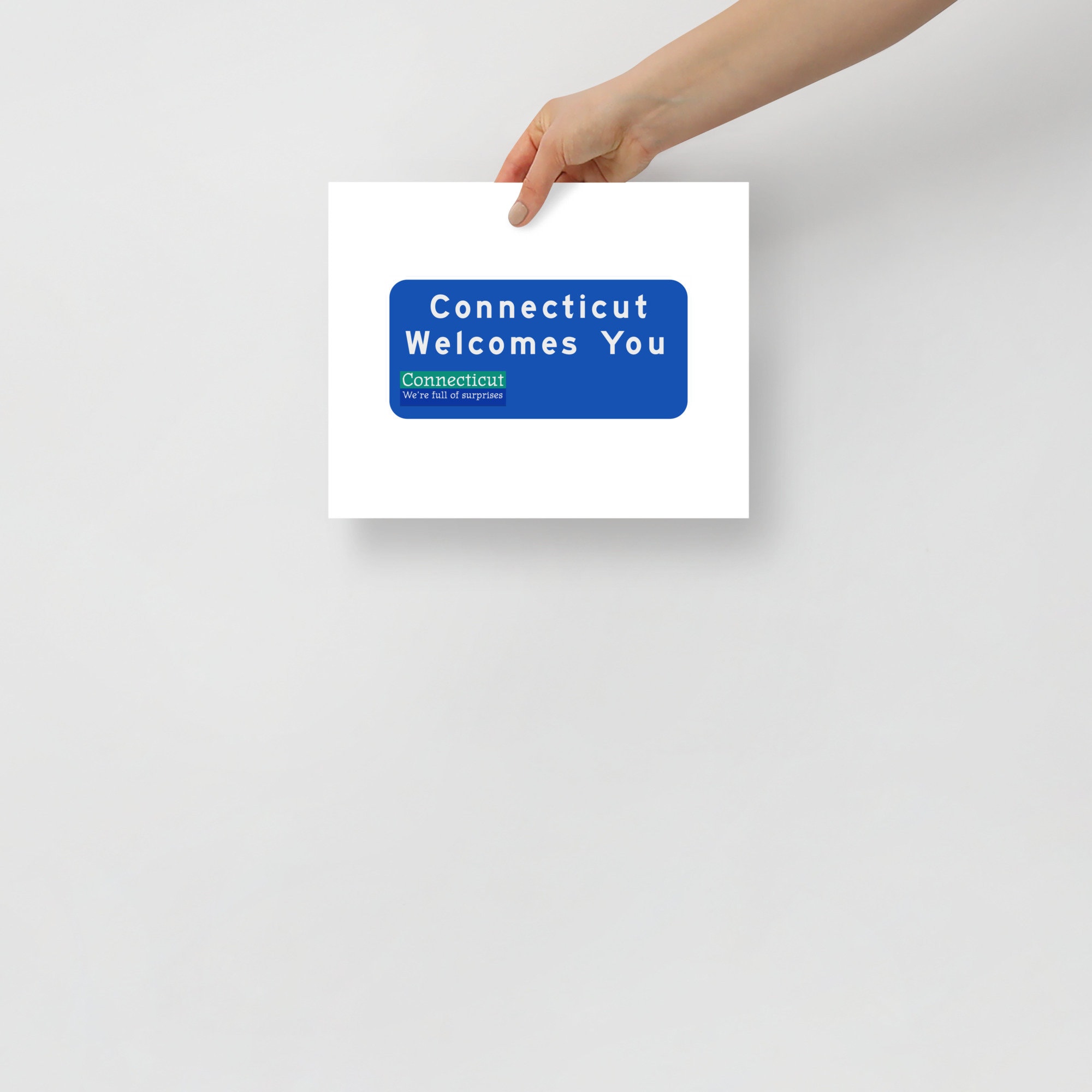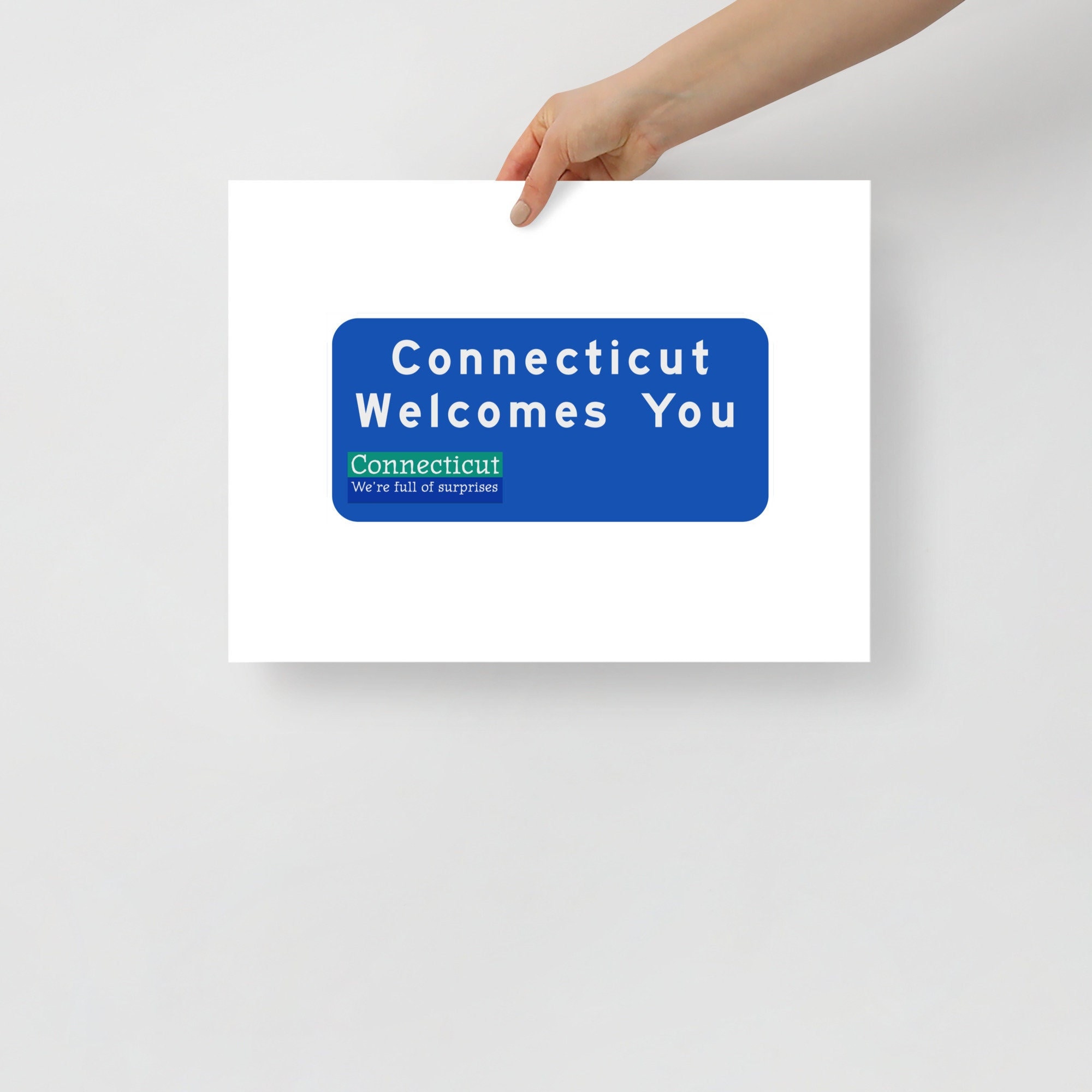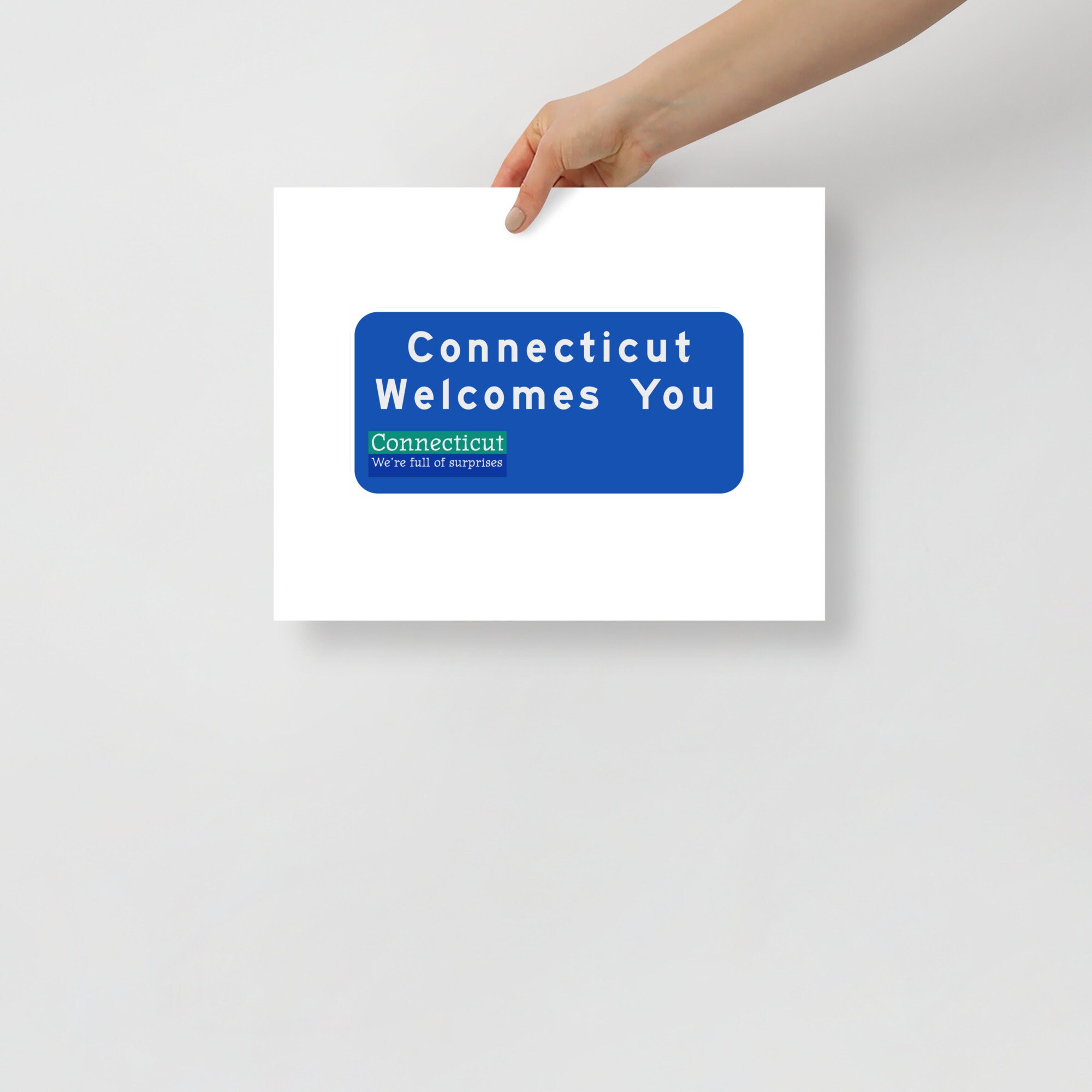 Are you or someone you care about from Connecticut? Do you have fond memories of spending time there? This artwork, featuring my version the highway sign found at the border of Connecticut, is designed for you!